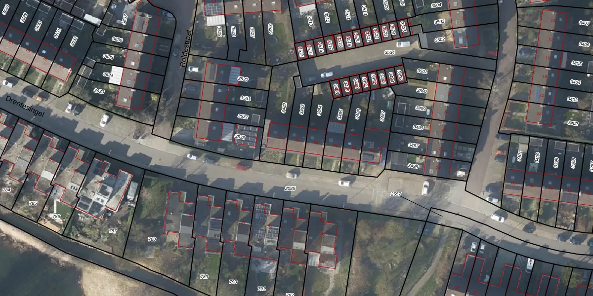 Gebruik de zoekbalk of klik op een perceel voor informatie over de adressen binnen dit perceel.
