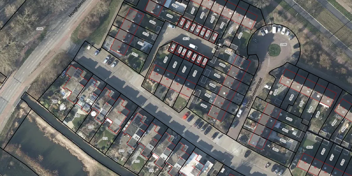Gebruik de zoekbalk of klik op een perceel voor informatie over de adressen binnen dit perceel.