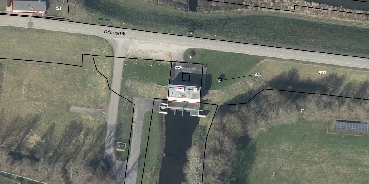 Het perceel waarop Drielsedijk 19-A staat heeft een oppervlakte van 2,9 ha. Dit is een zeer groot perceel. De perceeloppervlakte wordt geregistreerd door het Kadaster. Gedetailleerde informatie over de maten van dit perceel kunt u vinden in het rapport Kadastrale kaart met maatvoering van Drielsedijk 19-A.