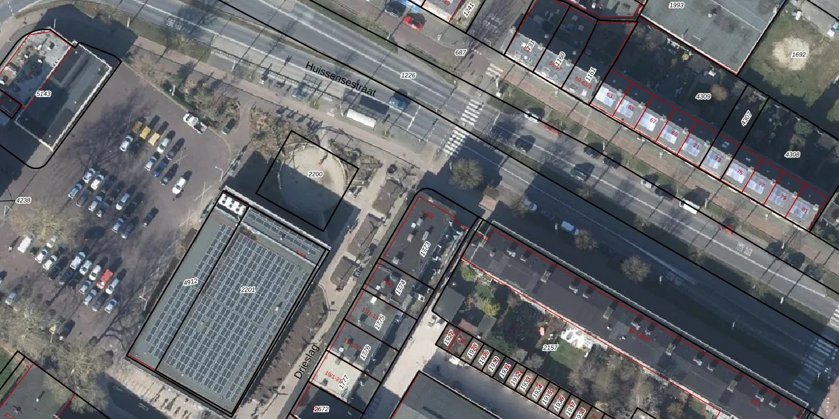 Het perceel waarop Drieslag 1 staat heeft een oppervlakte van 311 m². Dit is een groot perceel. De perceeloppervlakte wordt geregistreerd door het Kadaster. Gedetailleerde informatie over de maten van dit perceel kunt u vinden in het rapport Kadastrale kaart met maatvoering van Drieslag 1.
