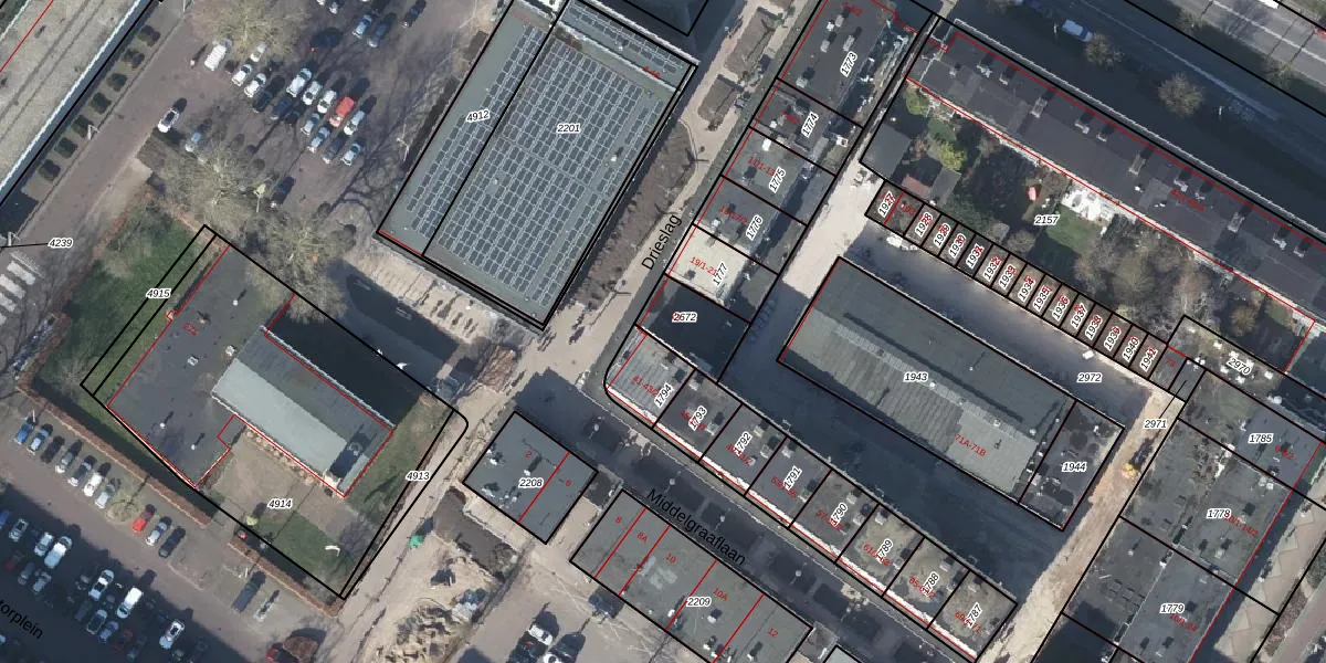 Gebruik de zoekbalk of klik op een perceel voor informatie over de adressen binnen dit perceel.
