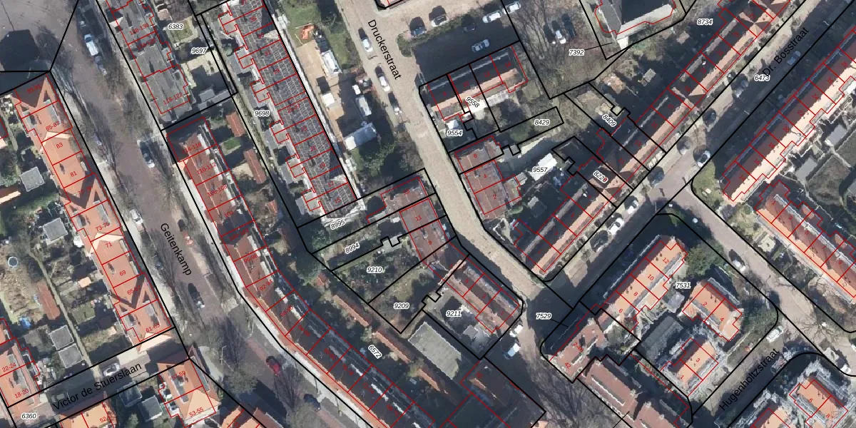 Gebruik de zoekbalk of klik op een perceel voor informatie over de adressen binnen dit perceel.