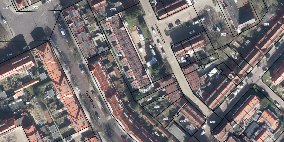 Het perceel waarop Druckerstraat 19 staat heeft een oppervlakte van 847 m². Dit is een groot perceel. De perceeloppervlakte wordt geregistreerd door het Kadaster. Gedetailleerde informatie over de maten van dit perceel kunt u vinden in het rapport Kadastrale kaart met maatvoering van Druckerstraat 19.