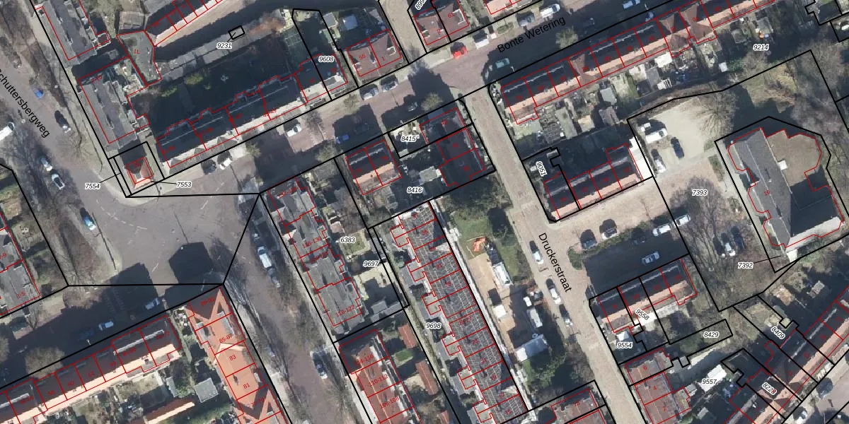 Het perceel waarop Druckerstraat 37 staat heeft een oppervlakte van 847 m². Dit is een groot perceel. De perceeloppervlakte wordt geregistreerd door het Kadaster. Gedetailleerde informatie over de maten van dit perceel kunt u vinden in het rapport Kadastrale kaart met maatvoering van Druckerstraat 37.