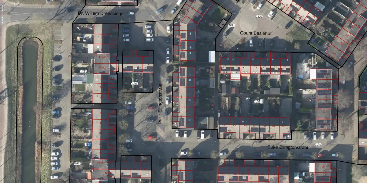 Het perceel waarop Duke Ellingtonstraat 13 staat heeft een oppervlakte van 4710 m². Dit is een zeer groot perceel. De perceeloppervlakte wordt geregistreerd door het Kadaster. Gedetailleerde informatie over de maten van dit perceel kunt u vinden in het rapport Kadastrale kaart met maatvoering van Duke Ellingtonstraat 13.