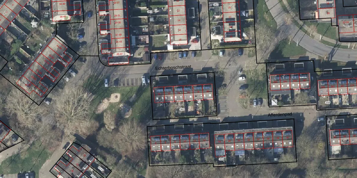 Het perceel waarop Echterboschstraat 74 staat heeft een oppervlakte van 876 m². Dit is een groot perceel. De perceeloppervlakte wordt geregistreerd door het Kadaster. Gedetailleerde informatie over de maten van dit perceel kunt u vinden in het rapport Kadastrale kaart met maatvoering van Echterboschstraat 74.