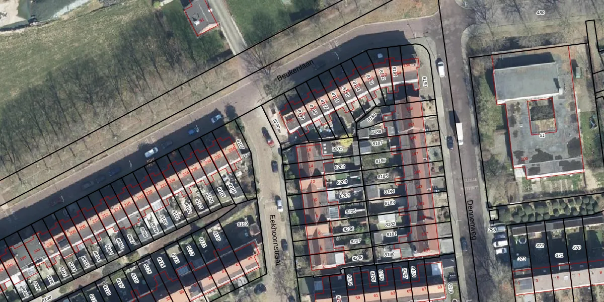 Het perceel waarop Eekhoornstraat 16 staat heeft een oppervlakte van 152 m². Dit is een middelgroot perceel. De perceeloppervlakte wordt geregistreerd door het Kadaster. Gedetailleerde informatie over de maten van dit perceel kunt u vinden in het rapport Kadastrale kaart met maatvoering van Eekhoornstraat 16.
