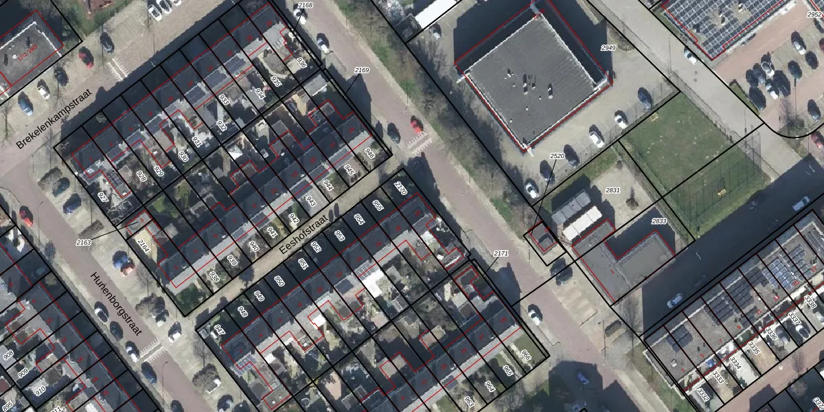 Eeshofstraat 20 is gelegen op kadastraal perceel AHM01T2170. Deze kadastrale aanduiding is uniek en wordt gebruikt door het Kadaster om eigendomsrechten en andere zakelijke rechten vast te leggen. Het perceel maakt onderdeel uit van de kadastrale gemeente Arnhem.
