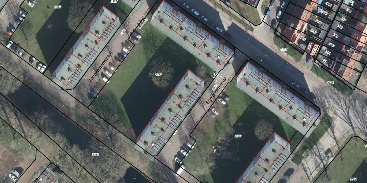 Het perceel waarop Egelantierstraat 4-3 staat heeft een oppervlakte van 3521 m². Dit is een zeer groot perceel. De perceeloppervlakte wordt geregistreerd door het Kadaster. Gedetailleerde informatie over de maten van dit perceel kunt u vinden in het rapport Kadastrale kaart met maatvoering van Egelantierstraat 4-3.