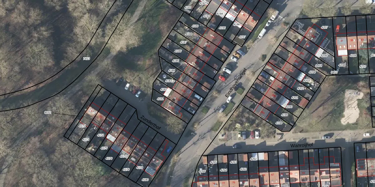 Gebruik de zoekbalk of klik op een perceel voor informatie over de adressen binnen dit perceel.