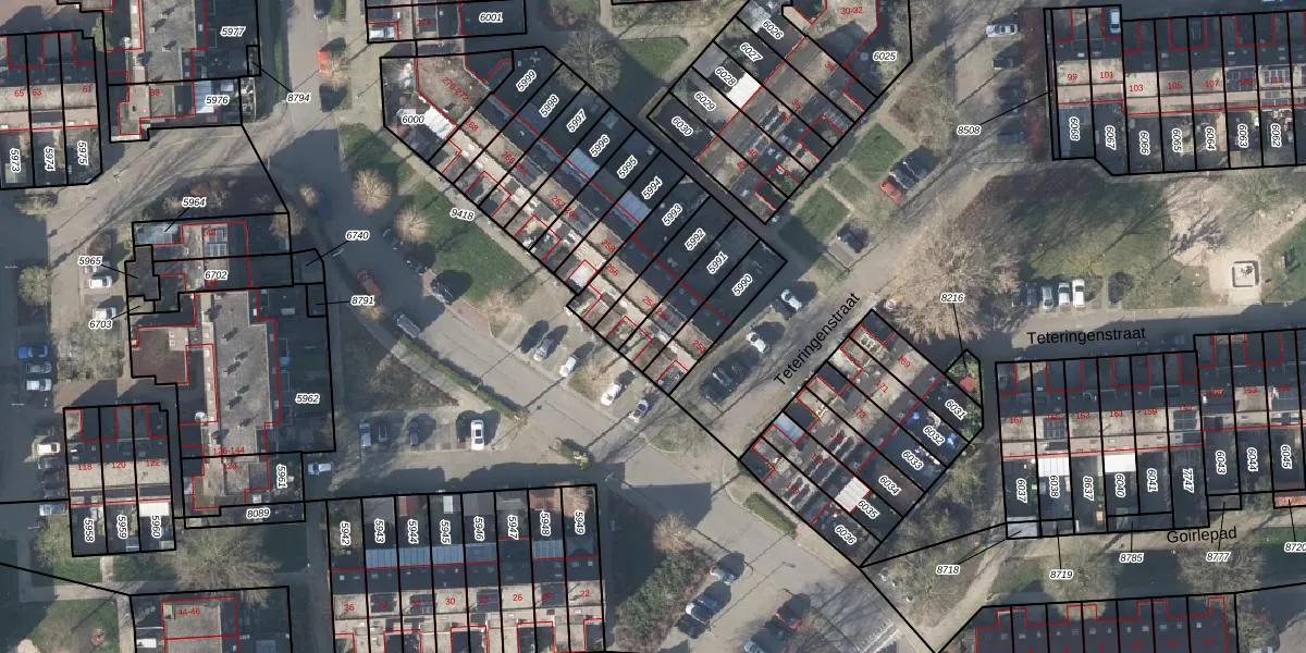 Gebruik de zoekbalk of klik op een perceel voor informatie over de adressen binnen dit perceel.