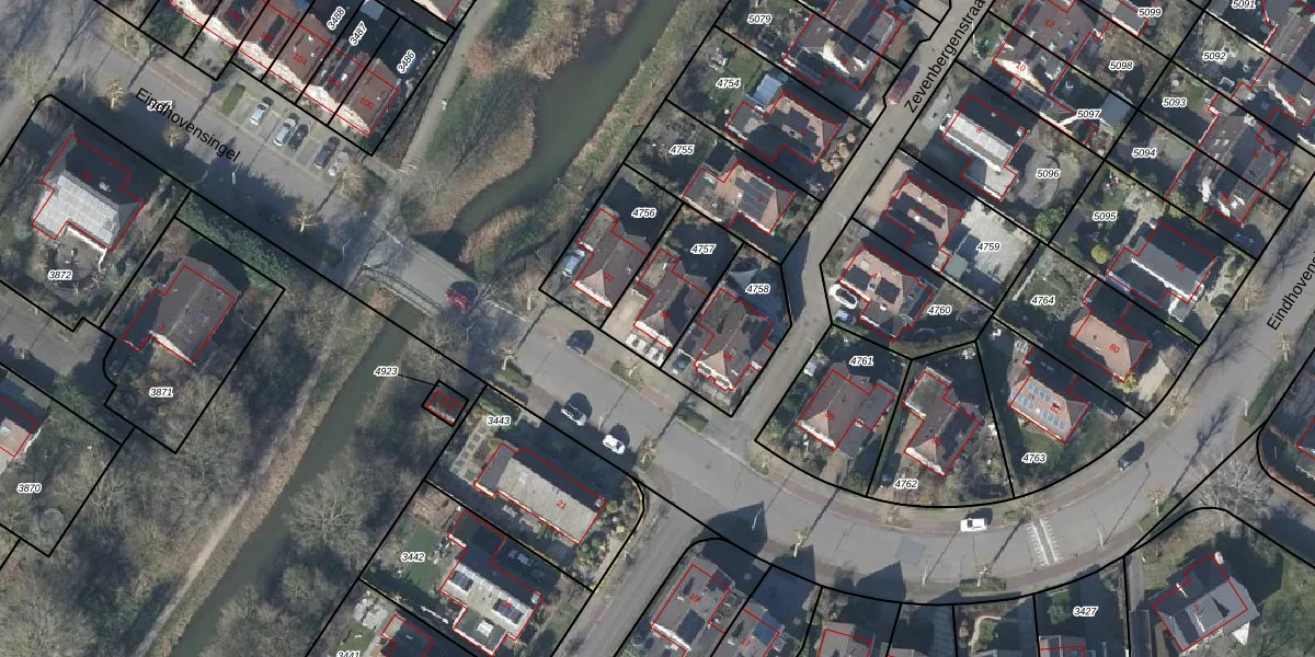 Het perceel waarop Eindhovensingel 90 staat heeft een oppervlakte van 258 m². Dit is een middelgroot perceel. De perceeloppervlakte wordt geregistreerd door het Kadaster. Gedetailleerde informatie over de maten van dit perceel kunt u vinden in het rapport Kadastrale kaart met maatvoering van Eindhovensingel 90.