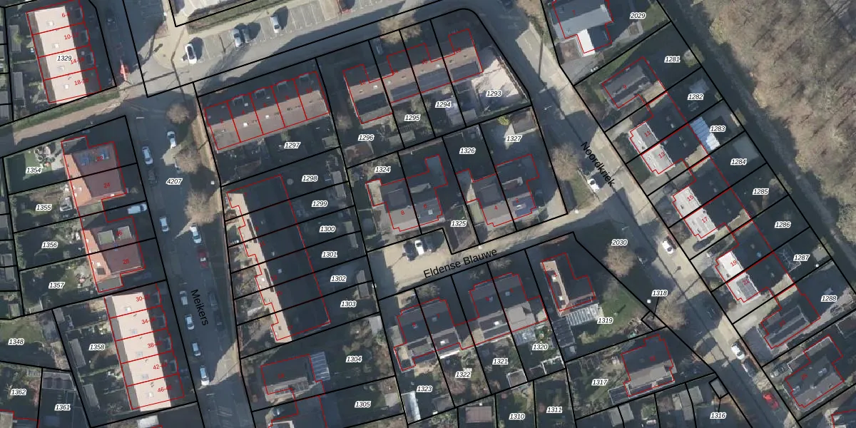 Gebruik de zoekbalk of klik op een perceel voor informatie over de adressen binnen dit perceel.
