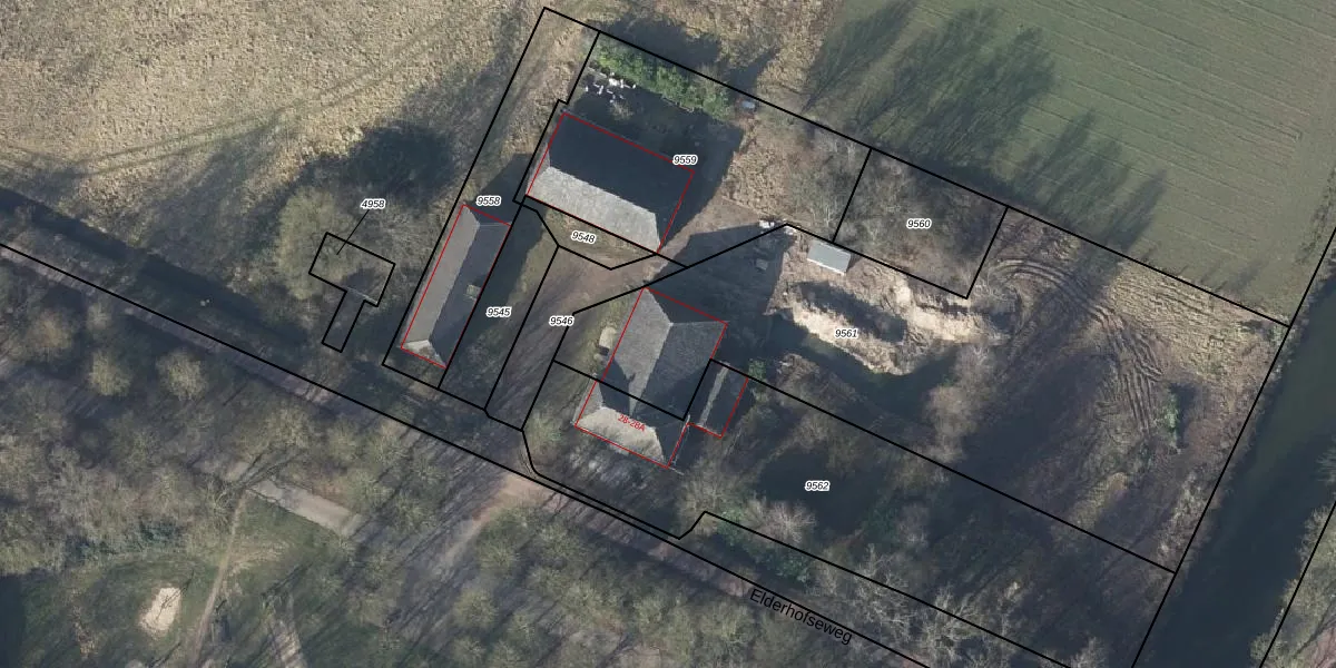 Het perceel waarop Elderhofseweg 28-A staat heeft een oppervlakte van 2974 m². Dit is een zeer groot perceel. De perceeloppervlakte wordt geregistreerd door het Kadaster. Gedetailleerde informatie over de maten van dit perceel kunt u vinden in het rapport Kadastrale kaart met maatvoering van Elderhofseweg 28-A.
