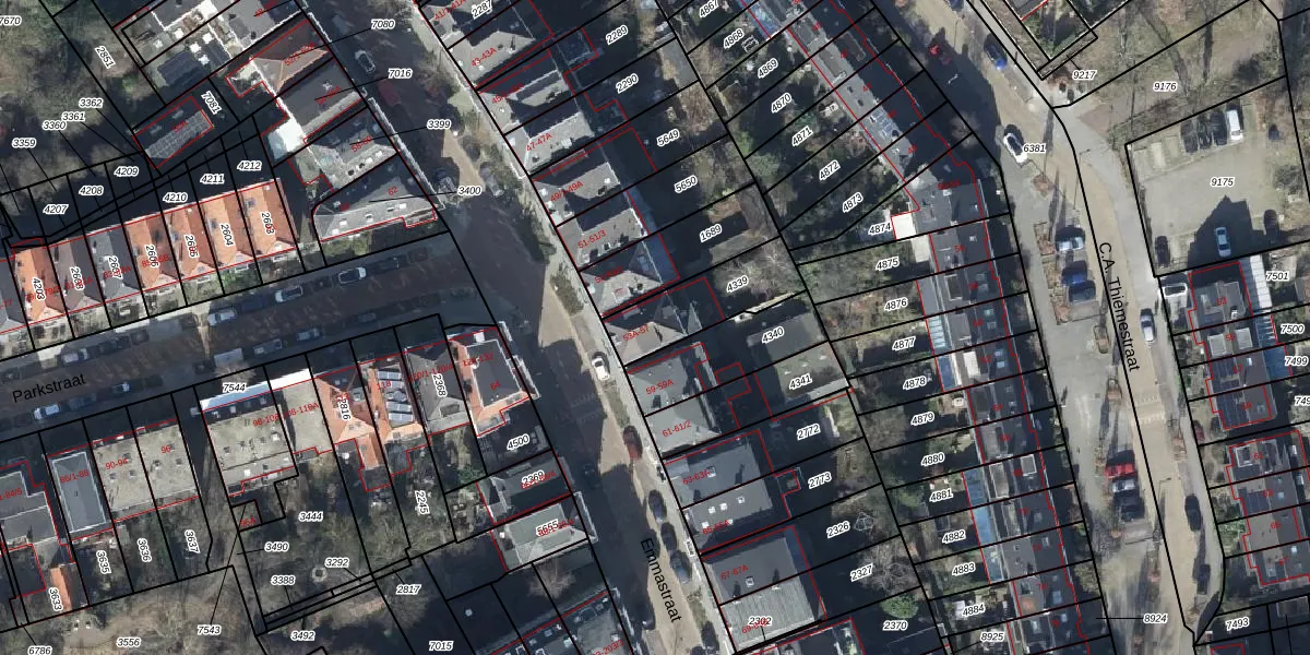 Het perceel waarop Emmastraat 53-A staat heeft een oppervlakte van 252 m². Dit is een middelgroot perceel. De perceeloppervlakte wordt geregistreerd door het Kadaster. Gedetailleerde informatie over de maten van dit perceel kunt u vinden in het rapport Kadastrale kaart met maatvoering van Emmastraat 53-A.