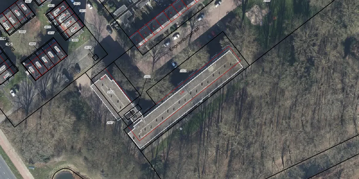 Het perceel waarop Engelenburgstraat 32 staat heeft een oppervlakte van 1690 m². Dit is een zeer groot perceel. De perceeloppervlakte wordt geregistreerd door het Kadaster. Gedetailleerde informatie over de maten van dit perceel kunt u vinden in het rapport Kadastrale kaart met maatvoering van Engelenburgstraat 32.