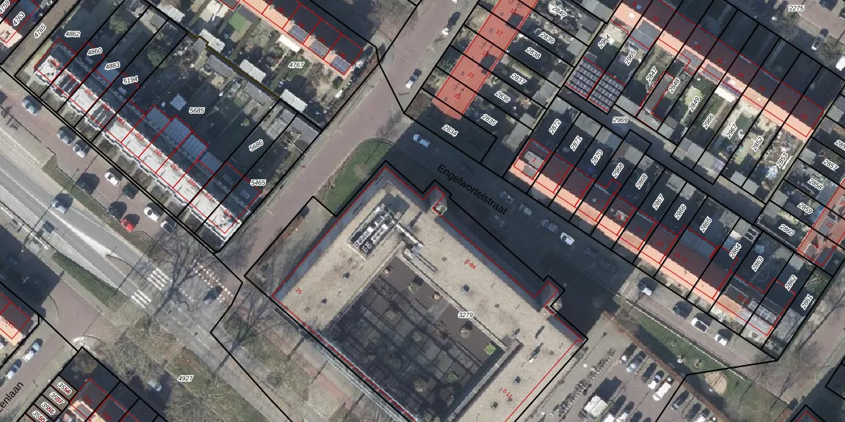 Het perceel waarop Engelwortelstraat 16 staat heeft een oppervlakte van 3040 m². Dit is een zeer groot perceel. De perceeloppervlakte wordt geregistreerd door het Kadaster. Gedetailleerde informatie over de maten van dit perceel kunt u vinden in het rapport Kadastrale kaart met maatvoering van Engelwortelstraat 16.