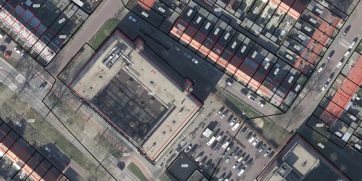 Het perceel waarop Engelwortelstraat 74 staat heeft een oppervlakte van 3040 m². Dit is een zeer groot perceel. De perceeloppervlakte wordt geregistreerd door het Kadaster. Gedetailleerde informatie over de maten van dit perceel kunt u vinden in het rapport Kadastrale kaart met maatvoering van Engelwortelstraat 74.