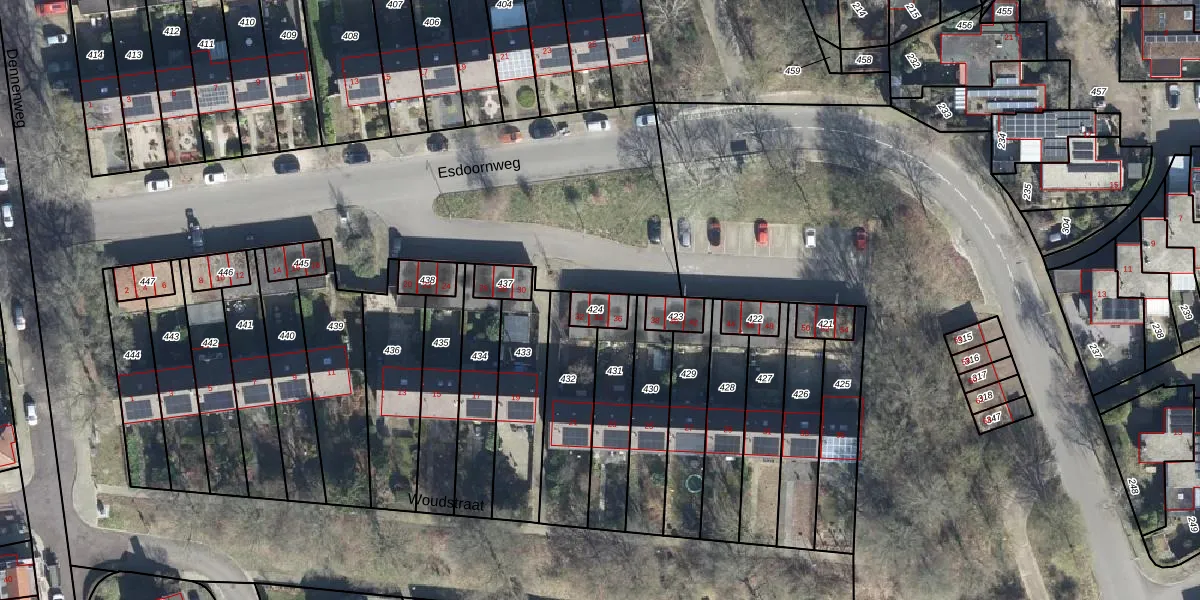 Het perceel waarop Esdoornweg 34 staat heeft een oppervlakte van 55 m². Dit is een klein perceel. De perceeloppervlakte wordt geregistreerd door het Kadaster. Gedetailleerde informatie over de maten van dit perceel kunt u vinden in het rapport Kadastrale kaart met maatvoering van Esdoornweg 34.