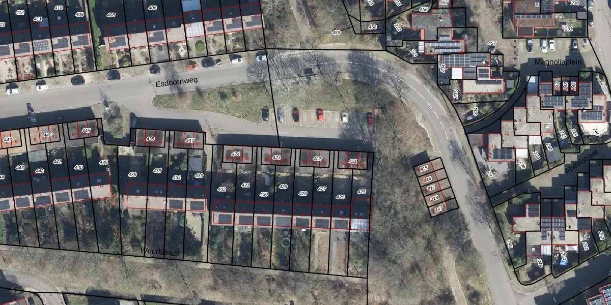 Esdoornweg 44 is gelegen op kadastraal perceel AHM01U422. Deze kadastrale aanduiding is uniek en wordt gebruikt door het Kadaster om eigendomsrechten en andere zakelijke rechten vast te leggen. Het perceel maakt onderdeel uit van de kadastrale gemeente Arnhem.