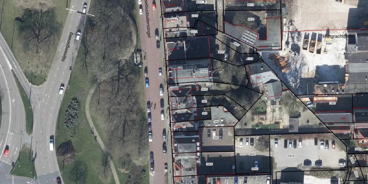 Het perceel waarop het adres ligt is AHM01-Q-5916. De afkorting 'AHM01' staat voor kadastrale gemeente Arnhem. Het perceel is 396 m² groot. Dat is kleiner dan de gemiddelde perceeloppervlakte in Arnhem, dat op 2527,39 m² ligt. De grootste perceeloppervlakte in de kadastrale gemeente is 1,57 km². De kleinste oppervlakte bedraagt 0 m². Op het perceel liggen in totaal 10 adressen. In de Basisregistratie Kadaster (BRK) werden de grenzen van het perceel geregistreerd op 28-06-2017.