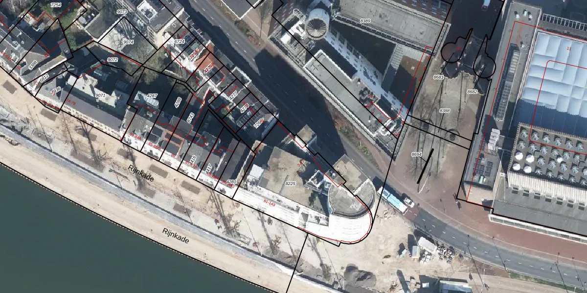Het perceel waarop het adres ligt is AHM01-O-8225. De afkorting 'AHM01' staat voor kadastrale gemeente Arnhem. Het perceel is kleiner dan gemiddeld in Arnhem. Het perceel is 1041 m² groot, terwijl het gemiddelde ligt op 2526,64 m². Het grootste perceel in de kadastrale gemeente is 1,57 km². Het kleinste perceel heeft een oppervlakte van 0 m². Op het perceel zijn 35 adressen aanwezig. De huidige grenzen van het perceel zijn digitaal in de Basisregistratie Kadaster (BRK) geregistreerd op 17-01-2011.
