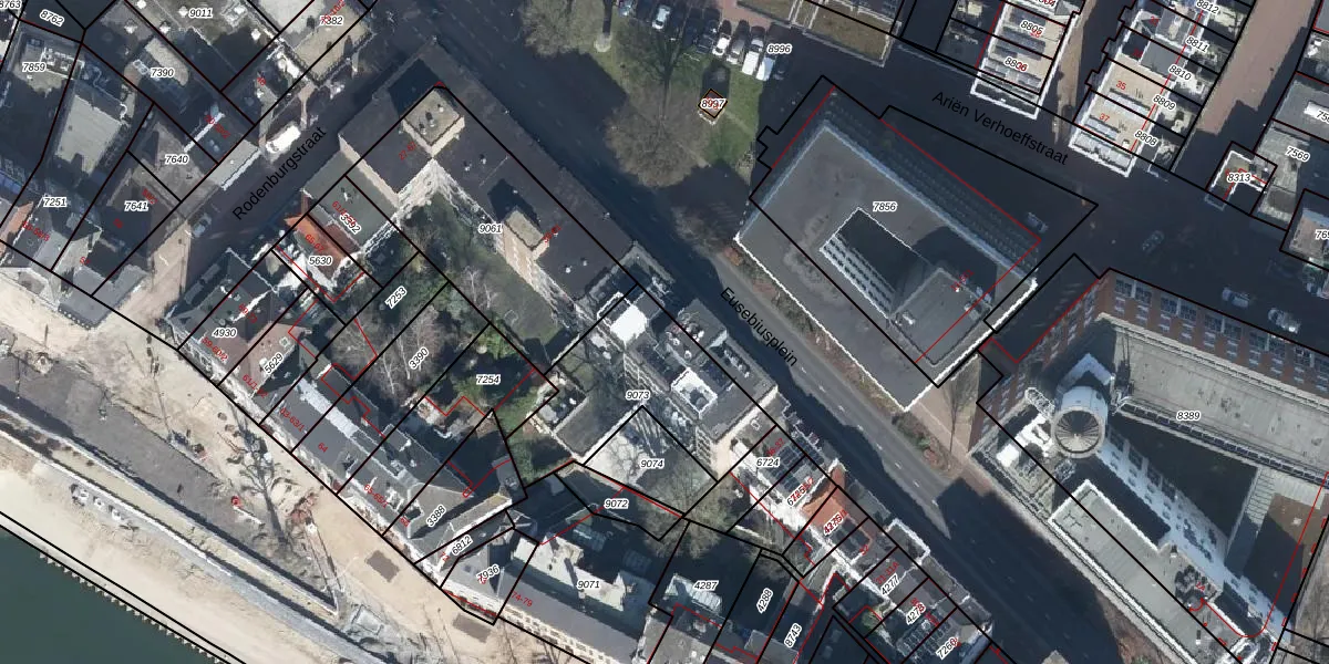 Eusebiusplein 45 is gelegen op kadastraal perceel AHM01O9073. Deze kadastrale aanduiding is uniek en wordt gebruikt door het Kadaster om eigendomsrechten en andere zakelijke rechten vast te leggen. Het perceel maakt onderdeel uit van de kadastrale gemeente Arnhem.