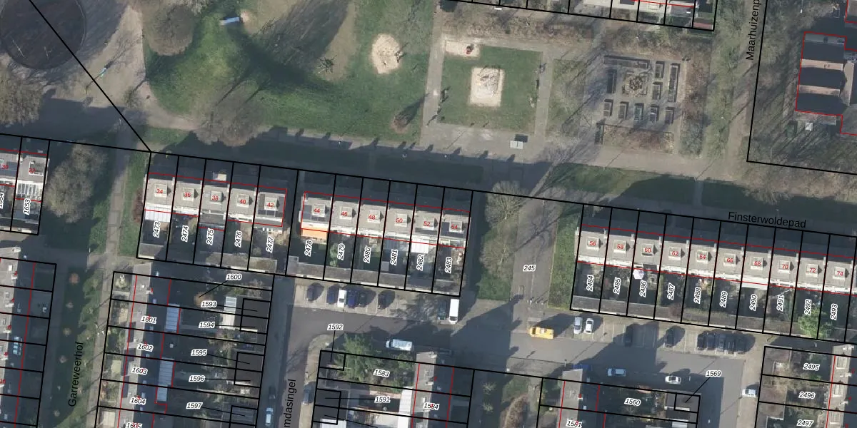 Finsterwoldepad 52 is gelegen op kadastraal perceel AHM01W2482. Deze kadastrale aanduiding is uniek en wordt gebruikt door het Kadaster om eigendomsrechten en andere zakelijke rechten vast te leggen. Het perceel maakt onderdeel uit van de kadastrale gemeente Arnhem.