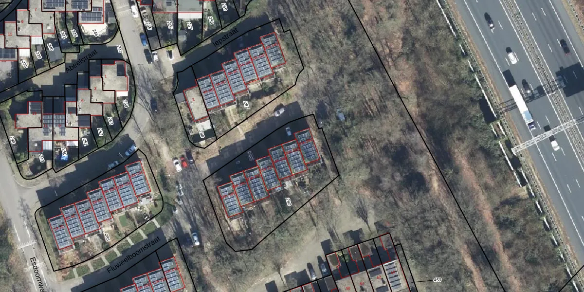Het perceel waarop Fluweelboomstraat 26-A staat heeft een oppervlakte van 1188 m². Dit is een zeer groot perceel. De perceeloppervlakte wordt geregistreerd door het Kadaster. Gedetailleerde informatie over de maten van dit perceel kunt u vinden in het rapport Kadastrale kaart met maatvoering van Fluweelboomstraat 26-A.