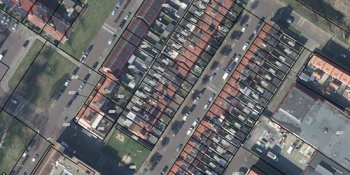 Gebruik de zoekbalk of klik op een perceel voor informatie over de adressen binnen dit perceel.