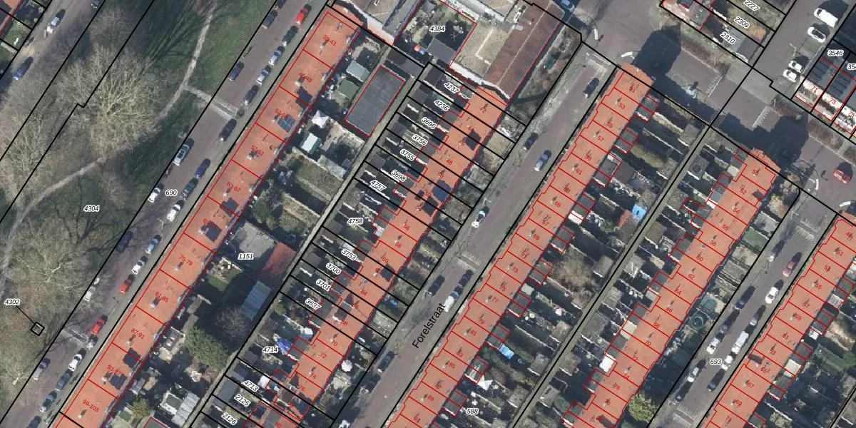 Forelstraat 54 is gelegen op kadastraal perceel AHM01E4757. Deze kadastrale aanduiding is uniek en wordt gebruikt door het Kadaster om eigendomsrechten en andere zakelijke rechten vast te leggen. Het perceel maakt onderdeel uit van de kadastrale gemeente Arnhem.
