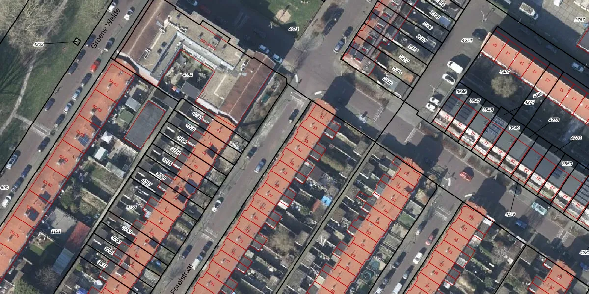 Het perceel waarop Forelstraat 57 staat heeft een oppervlakte van 4528 m². Dit is een zeer groot perceel. De perceeloppervlakte wordt geregistreerd door het Kadaster. Gedetailleerde informatie over de maten van dit perceel kunt u vinden in het rapport Kadastrale kaart met maatvoering van Forelstraat 57.