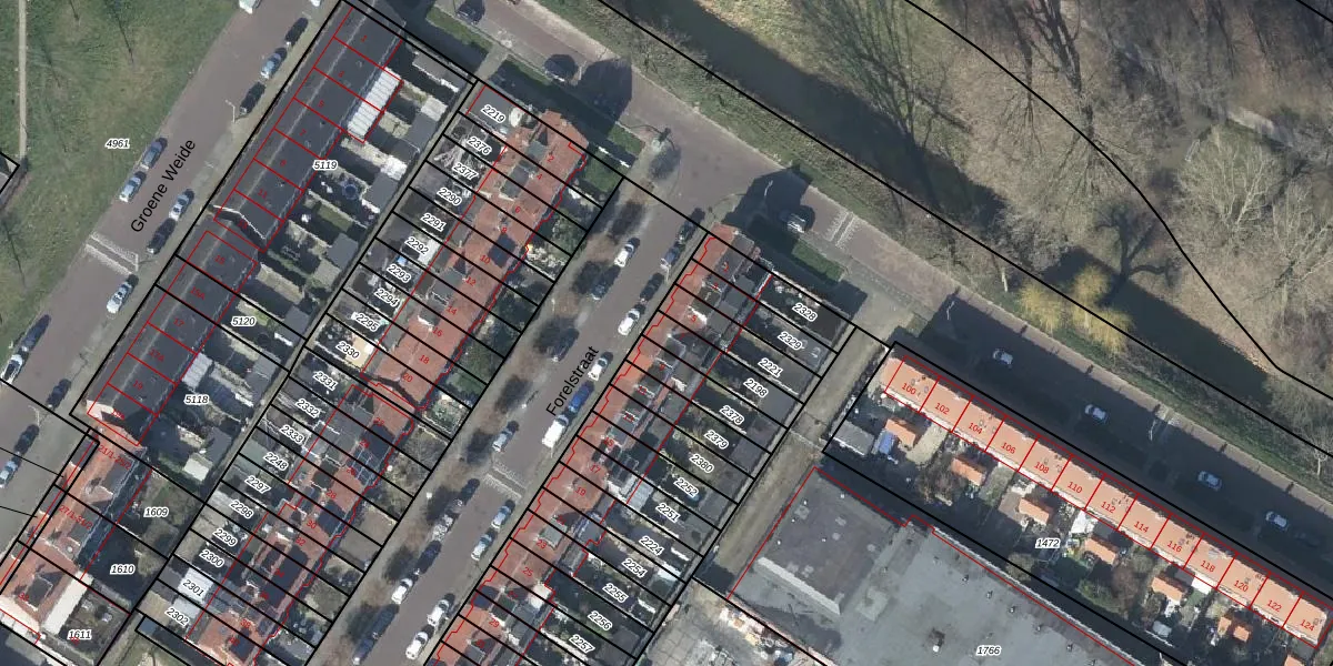 Gebruik de zoekbalk of klik op een perceel voor informatie over de adressen binnen dit perceel.