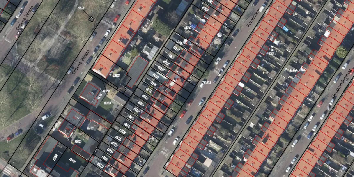 Gebruik de zoekbalk of klik op een perceel voor informatie over de adressen binnen dit perceel.