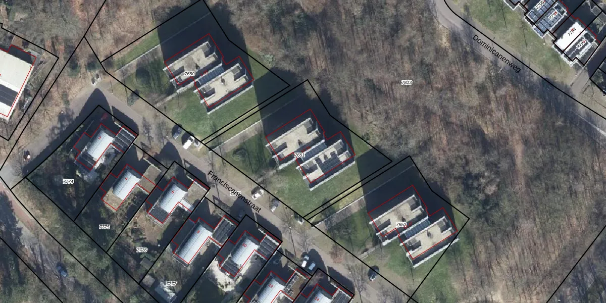 Het perceel waarop Franciscanenstraat 17 staat heeft een oppervlakte van 1352 m². Dit is een zeer groot perceel. De perceeloppervlakte wordt geregistreerd door het Kadaster. Gedetailleerde informatie over de maten van dit perceel kunt u vinden in het rapport Kadastrale kaart met maatvoering van Franciscanenstraat 17.