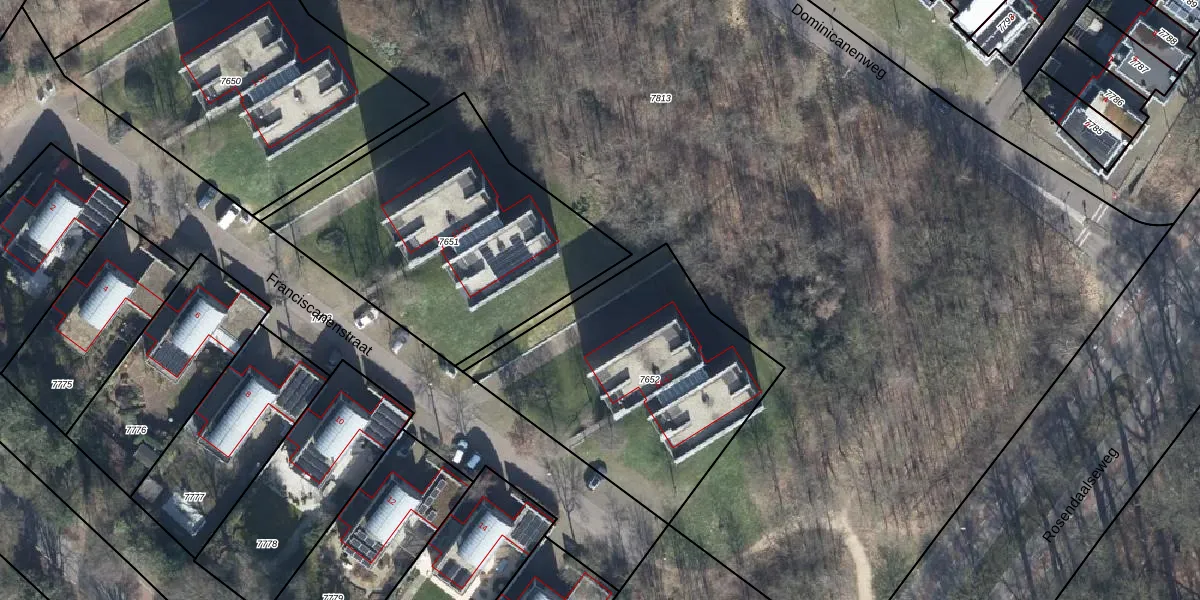 Het perceel waarop Franciscanenstraat 33-B staat heeft een oppervlakte van 1219 m². Dit is een zeer groot perceel. De perceeloppervlakte wordt geregistreerd door het Kadaster. Gedetailleerde informatie over de maten van dit perceel kunt u vinden in het rapport Kadastrale kaart met maatvoering van Franciscanenstraat 33-B.