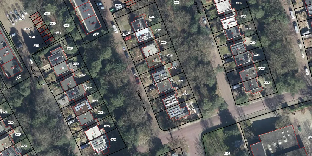Het perceel waarop Franckstraat 8 staat heeft een oppervlakte van 241 m². Dit is een middelgroot perceel. De perceeloppervlakte wordt geregistreerd door het Kadaster. Gedetailleerde informatie over de maten van dit perceel kunt u vinden in het rapport Kadastrale kaart met maatvoering van Franckstraat 8.