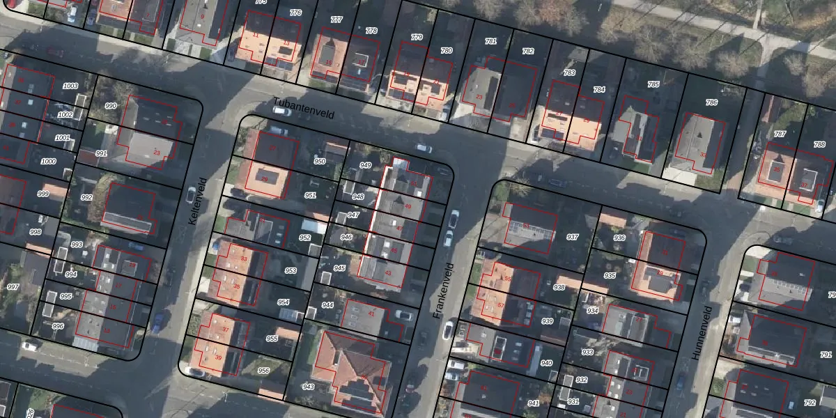 Het perceel waarop Frankenveld 49 staat heeft een oppervlakte van 142 m². Dit is een middelgroot perceel. De perceeloppervlakte wordt geregistreerd door het Kadaster. Gedetailleerde informatie over de maten van dit perceel kunt u vinden in het rapport Kadastrale kaart met maatvoering van Frankenveld 49.