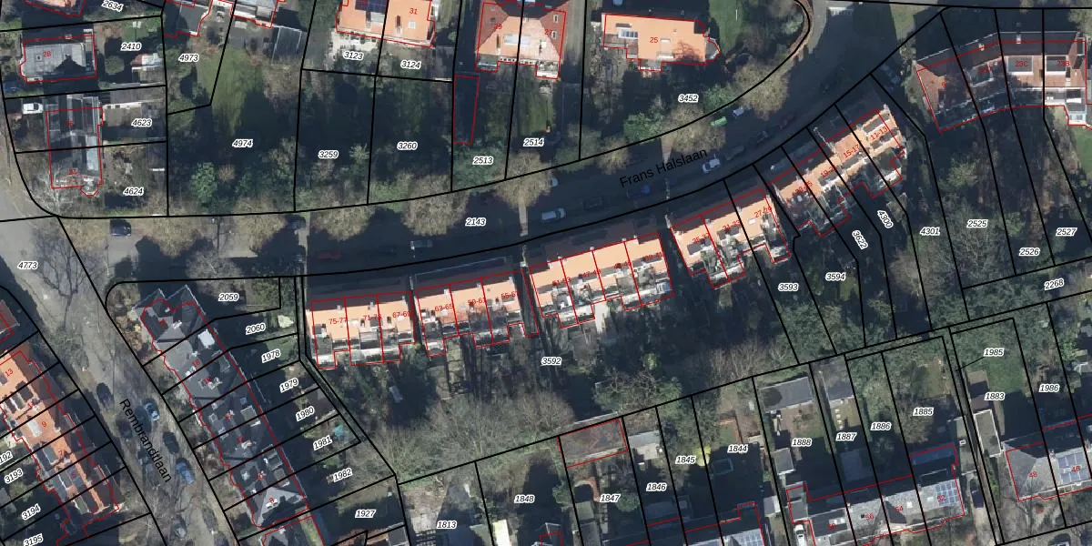 Frans Halslaan 53 is gelegen op kadastraal perceel AHM01M3592. Deze kadastrale aanduiding is uniek en wordt gebruikt door het Kadaster om eigendomsrechten en andere zakelijke rechten vast te leggen. Het perceel maakt onderdeel uit van de kadastrale gemeente Arnhem.
