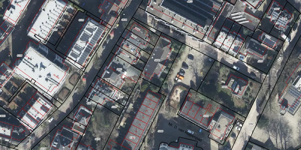 Het perceel waarop Frombergdwarsstraat 25 staat heeft een oppervlakte van 524 m². Dit is een groot perceel. De perceeloppervlakte wordt geregistreerd door het Kadaster. Gedetailleerde informatie over de maten van dit perceel kunt u vinden in het rapport Kadastrale kaart met maatvoering van Frombergdwarsstraat 25.
