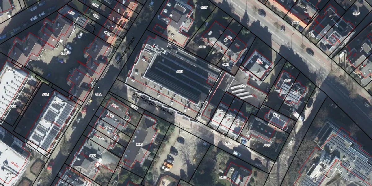 Het perceel waarop Frombergdwarsstraat 70 staat heeft een oppervlakte van 1450 m². Dit is een zeer groot perceel. De perceeloppervlakte wordt geregistreerd door het Kadaster. Gedetailleerde informatie over de maten van dit perceel kunt u vinden in het rapport Kadastrale kaart met maatvoering van Frombergdwarsstraat 70.