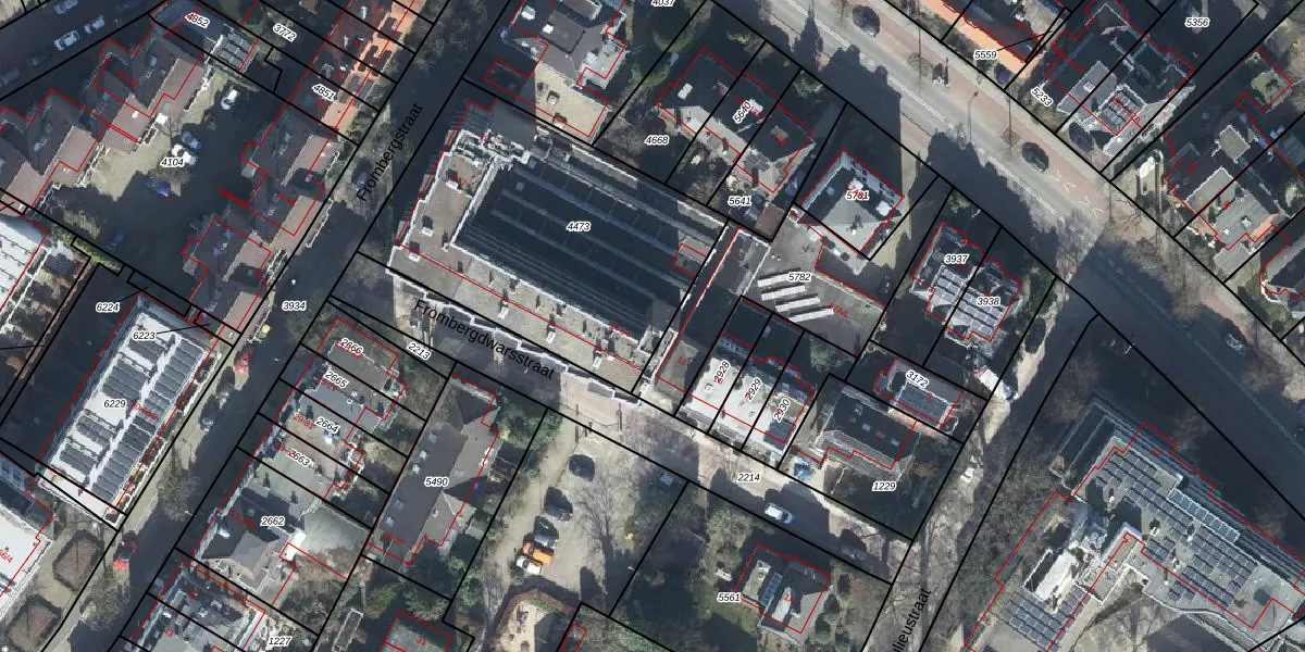 Het perceel waarop Frombergdwarsstraat 84 staat heeft een oppervlakte van 1450 m². Dit is een zeer groot perceel. De perceeloppervlakte wordt geregistreerd door het Kadaster. Gedetailleerde informatie over de maten van dit perceel kunt u vinden in het rapport Kadastrale kaart met maatvoering van Frombergdwarsstraat 84.