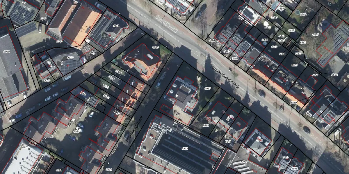 Het perceel waarop Frombergstraat 1 staat heeft een oppervlakte van 725 m². Dit is een groot perceel. De perceeloppervlakte wordt geregistreerd door het Kadaster. Gedetailleerde informatie over de maten van dit perceel kunt u vinden in het rapport Kadastrale kaart met maatvoering van Frombergstraat 1.