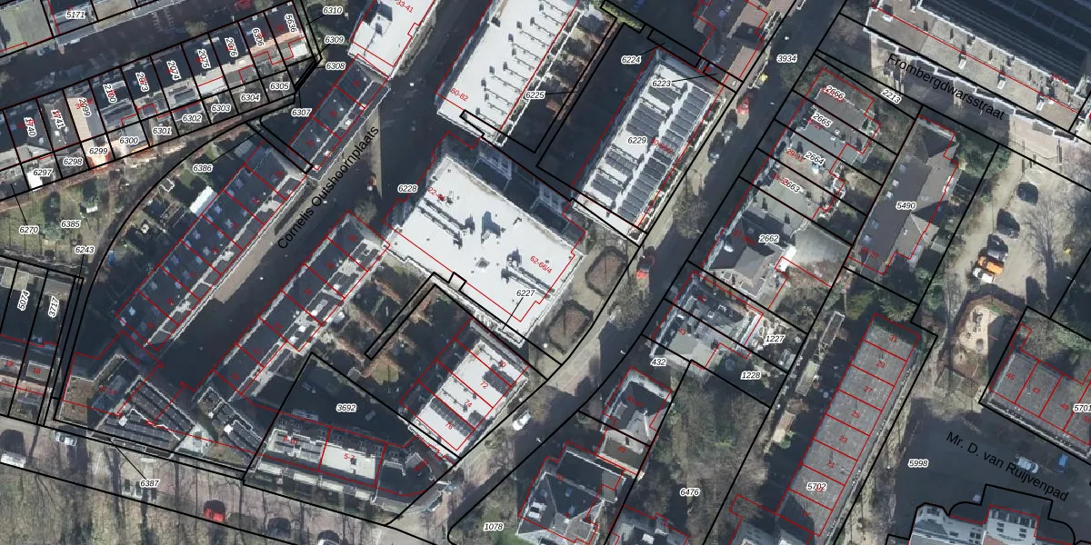 Het perceel waarop Frombergstraat 64-1 staat heeft een oppervlakte van 6130 m². Dit is een zeer groot perceel. De perceeloppervlakte wordt geregistreerd door het Kadaster. Gedetailleerde informatie over de maten van dit perceel kunt u vinden in het rapport Kadastrale kaart met maatvoering van Frombergstraat 64-1.