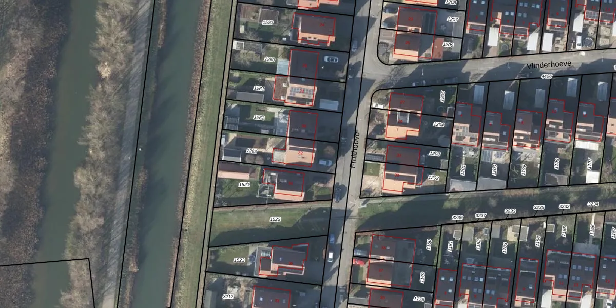 Het perceel waarop Fruithoeve 32 staat heeft een oppervlakte van 385 m². Dit is een groot perceel. De perceeloppervlakte wordt geregistreerd door het Kadaster. Gedetailleerde informatie over de maten van dit perceel kunt u vinden in het rapport Kadastrale kaart met maatvoering van Fruithoeve 32.
