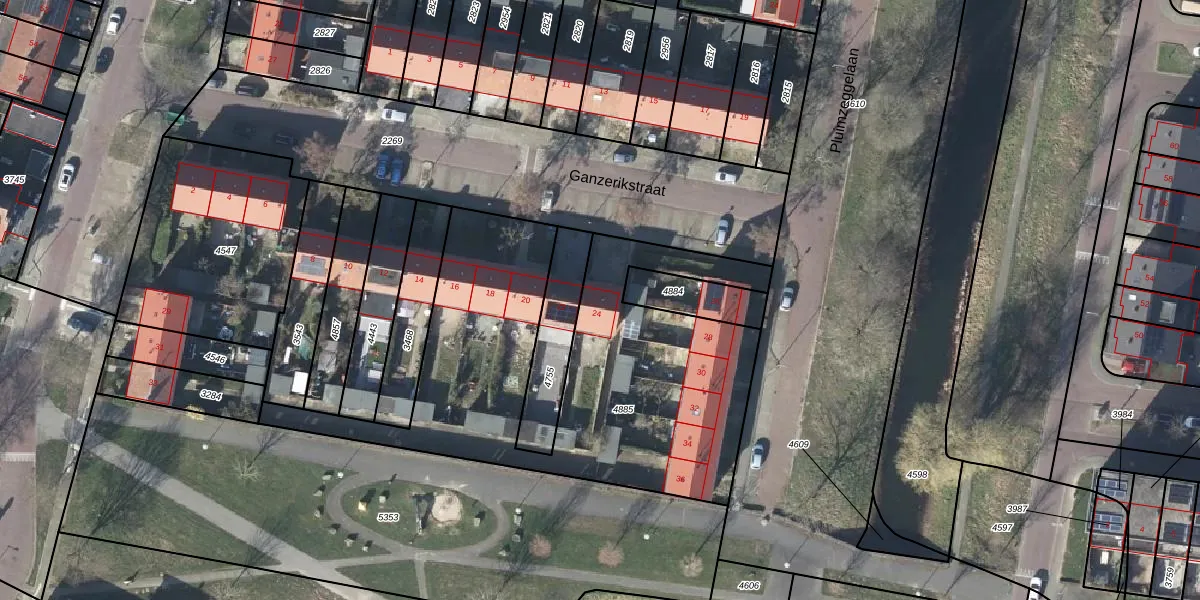 Het perceel waarop Ganzerikstraat 24 staat heeft een oppervlakte van 1935 m². Dit is een zeer groot perceel. De perceeloppervlakte wordt geregistreerd door het Kadaster. Gedetailleerde informatie over de maten van dit perceel kunt u vinden in het rapport Kadastrale kaart met maatvoering van Ganzerikstraat 24.