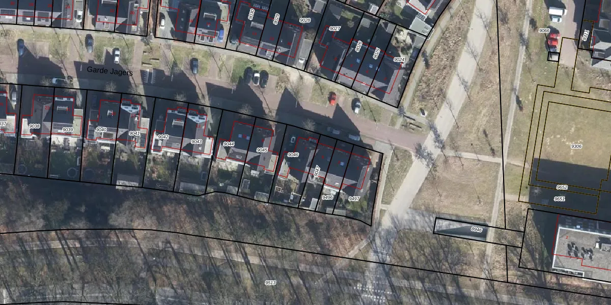 Garde Jagers 7 is gelegen op kadastraal perceel AHM01C9046. Deze kadastrale aanduiding is uniek en wordt gebruikt door het Kadaster om eigendomsrechten en andere zakelijke rechten vast te leggen. Het perceel maakt onderdeel uit van de kadastrale gemeente Arnhem.