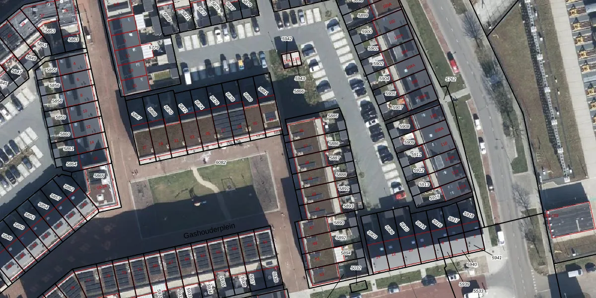 Het perceel waarop Gashouderplein 37 staat heeft een oppervlakte van 114 m². Dit is een middelgroot perceel. De perceeloppervlakte wordt geregistreerd door het Kadaster. Gedetailleerde informatie over de maten van dit perceel kunt u vinden in het rapport Kadastrale kaart met maatvoering van Gashouderplein 37.