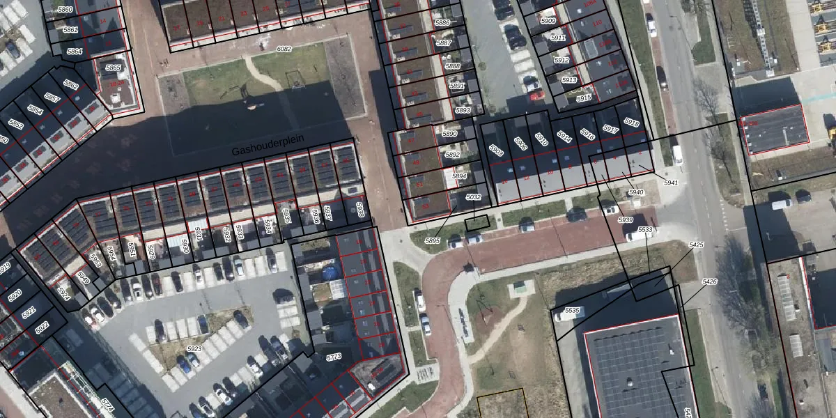 Gebruik de zoekbalk of klik op een perceel voor informatie over de adressen binnen dit perceel.