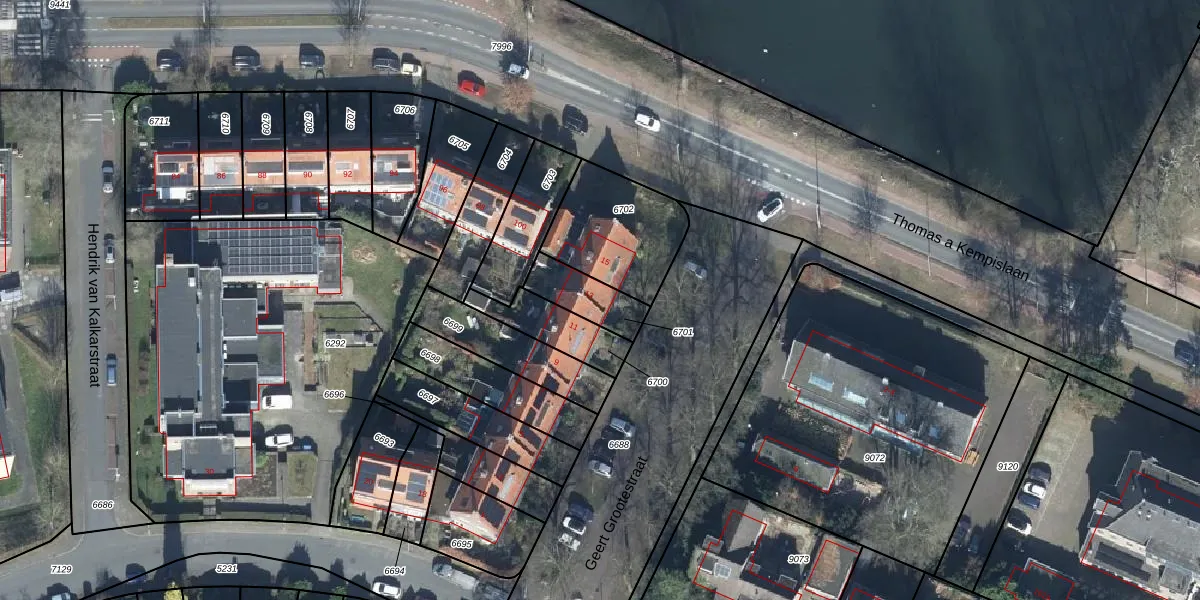 Gebruik de zoekbalk of klik op een perceel voor informatie over de adressen binnen dit perceel.